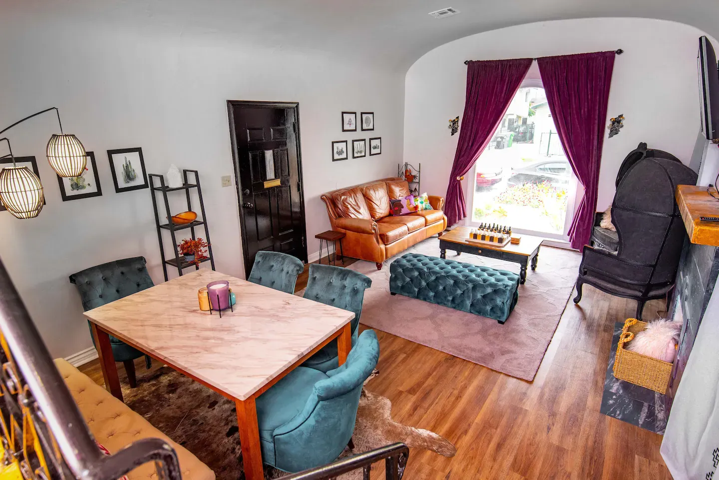 Two Spacious, Beautiful, Boho, Duplexes, both 2000 Sq Ft. with 4 Bedrooms and 1 + 1/2 Baths. Centrally Located, Stone Garden LA is perfect for intimate events, family getaways, photoshoots and retreats.